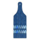 This is a fun cutting board for anyone who loves cats. It features two rows of cats, each in a different blue pattern. The cats are placed on a darker blue background with cat paw print images across it. Cute for the cat crazy one in your life!