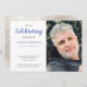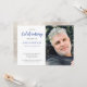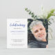 Invite friends and family to share their favorite stories and memories with this elegant blue and white celebration of life photo invitation.