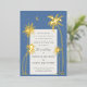 This boho wedding invitation would be perfect for anybody hosting a tropical destination wedding or anybody who wants a twilight summer vibe for their invitation. The design features shiny gold foil palm trees with a moon and stars on a soft blue background with and the reverse of the invitation has a boho star pattern to match.