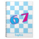 This blue checker personalized 67 notebook design features bold pink and blue digits on a playful checkerboard background. Perfect for kids, students, and teens who love fun, custom styles. A bright, 67 number design adds flair and fun. Personalize with any name.