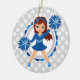 Blue Cheerleader Brunette - Cute Cheer Ceramic Tree Decoration