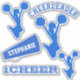 Cheerleader themed sticker set sheet done in blue and white, with silhouettes of cheerleaders, megaphone and graphic text. Personalise the name, on the megaphone, to read what you want.