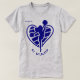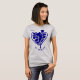 Here's a t-shirt suited for individual members of a cheerleading squad. A blue silhouette cheerleader with pom poms is in front of a matching blue pattern heart. Your custom text is at the bottom, and her name is at the top left. A thoughtful keepsake gift for a special time in their lives! *If you need a different colour scheme, message our store and we will try to accommodate!