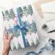 Blue Chequered Christmas Trees Wrapping Paper