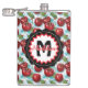A watercolor ai illustration pattern of retro red cherries, sage green foliage and blue chequered plaid personalised Flask .