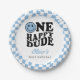 Blue Chequered Smile One Happy Dude 1st Birthday Paper Plate