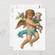 Beautiful image of a cherub with flowers and a turquoise sash.