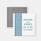 It was a bit smaller than expected, but I was too excited to check dimensions. The product itself send well printed though the grey text is a bit paint. Magnet worked perfectly on my fridge.