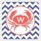 A sticker featuring an illustration of a crab over a chevron background. Personalise with your initial on crab.