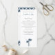Blue Tropical Palm Tree Destination tea length wedding programs With chevron zigzag pattern On Back. Elegant Beach Wedding Programs