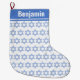 NewParkLane - Elegant Hanukkah / Christmas Stockings, with a pattern of blue chevron Stars of David.Add your own name in the easy to use text template for a personalised design. All text styles and colours can be altered.