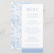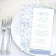 Elegant botanical whimsical blue chinoiserie pattern, Chinese porcelain inspired floral spring or summer wedding menu cards.