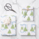 Blue Chinoiserie Christmas Tree Monogram Crest Wrapping Paper Sheet
