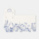 A classic blue and white design inspired by vintage Chinoiserie and toile de Jouy prints. Features hand-drawn botanical wreaths, delicate floral motifs, and soft ink-style detailing. The symmetrical layout and intricate borders evoke timeless elegance with a romantic, heirloom feel — perfect for refined occasions and traditional themes.