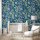 Blue Chinoiserie peacock floral peel and stick Wallpaper
