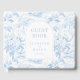Capture classic elegance with this sophisticated and refined wedding guest book adorned by a delicate light blue flower pattern, complemented by subtle blue text. This guest book serves as an ideal wedding gift for the newlyweds, adding a touch of timeless charm to their special day.