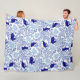 Blue Chinoiserie Rabbit–Elegant Vintage Bunny Fleece Blanket