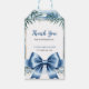 Add a graceful finishing touch to your baby shower favours with this Blue Chinoiserie Thank You Tag. Featuring elegant watercolor greenery, a soft blue satin ribbon illustration, and a refined porcelain-inspired frame, this tag is perfect for a boy or gender-neutral shower. Easily editable with your message, it complements classic, elegant, or chinoiserie-themed celebrations. Print and attach to gift bags, party favours, or keepsakes to leave a lasting impression on your guests.