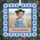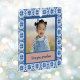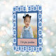 This pretty blue tile pattern ornament features your photo of a grandchild with the customisable text "I love you, grandma"