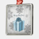 Decorate your Christmas tree this holiday season with a Blue Christmas Gift Holiday Ornament. Ornament design features a vibrant wrapped Christmas gift adorned with grey and white snowflakes against a grey grunge background. Additional gift and holiday items available with this design as well.