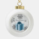 Decorate your Christmas tree this holiday season with a Blue Christmas Gift Ceramic Ball Ornament. Ornament design features a vibrant wrapped Christmas gift adorned with grey and white snowflakes against a grey grunge background. Additional gift and holiday items available with this design as well.