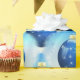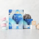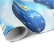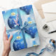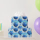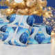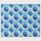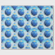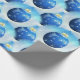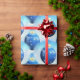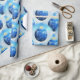 This wrapping paper features a repeating image of a traditional Christmas tree ornament in the colour blue.