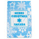Blue Christmas Snowflakes Personalised Kids Medium Gift Bag