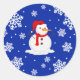 Blue christmas Snowman Snowflakes Classic Round Sticker
