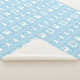 Sherpa blanket with light blue christmas sweater inspired pattern with reindeers, poinsettias and christmas trees.