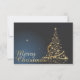 The Christmas card features an elegant golden Christmas tree made of sparkling stars on a dark blue background. The lettering "Merry Christmas" in golden, curved lettering stylishly rounds off the festive design. 🎄✨