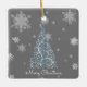 Blue Christmas Tree and Snowflakes Ceramic Ornament