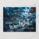 A beautiful snow-covered Christmas tree reflects the blue lights of the evening and features "The most Wonderful time of the year" on the front of these holiday postcards and your personal holiday greeting and logo on the back.