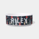 This Christmas-themed dog feeding bowl for food or water features a Christmas tree pattern design with a navy blue background. Add your pet’s name for a one-of-a-kind ceramic dish that’s both microwave and dishwasher-safe. Whether you’re decorating for the Holidays or gifting a new puppy owner, this USA-made dish brings festive charm to every mealtime. Available in two sizes: medium (25oz) and large (40oz), for kittens to adult felines. Available in two sizes, the medium one (25oz) is ideal for small to medium dogs like French Bulldogs, Shih Tzus, Boston Terriers, Pugs, and Cocker Spaniels. The large one (40oz) suits medium to large breeds like Labradors, Boxers, Bulldogs, and Golden Retrievers.
