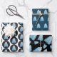 Blue Christmas Tree On Black And Blue Wrapping Paper Sheet