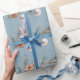 Blue Christmas Tree Pine Cones Ornaments Wrapping Paper