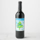 Blue Christmas Tree watercolor Wine Label