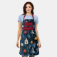 Step into a winter wonderland with this charming blue apron featuring whimsical houses, snowy trees, and colourful ornaments. Personalise it with your name for a unique festive touch. Perfect for bakers, chefs, and holiday hosts wanting to add warmth and magic to their cooking experience. Crafted for comfort and holiday charm, this apron will bring festive cheer to your kitchen.