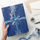 Christmas wrapping paper with white snowflakes on blue glitter background