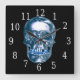 Blue Chrome Skull Square Clock