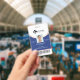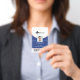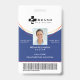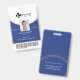 Professional and modern vertical photo identification badge. Customize with your photo, name, title, ID number, location name, logo. The circular line design can be changed to any color, simply click personalize and click to customize further. The reverse side features a blue background with the line pattern, which can also be changed to any color.