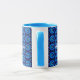 Loads of blue colours in this circular pattern! Customisable with a name in white that stands out from the blue.