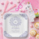blue circle leaf art monogram wedding paper plate