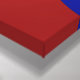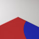 This bold geometric pattern features a blue circle in the centre and two blue half circles on the edges of a red background.