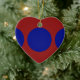 This bold geometric pattern features a blue circle in the centre and two blue half circles on the edges of a red background.