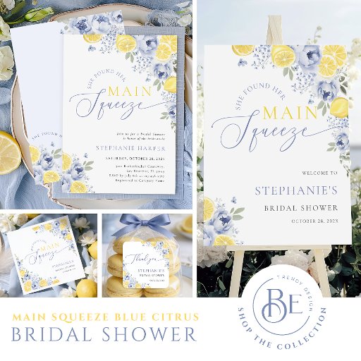 Add a fresh and elegant twist to your bridal shower with the Blue Citrus Lemon Collection. Featuring bright yellow lemons and soft blue watercolor florals, this design is perfect for a sunny summer celebration. The delicate script and cheerful colours create a modern and stylish bridal brunch vibe—sweet, simple, and full of charm.