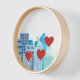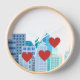 Blue City Buildings Cartoon Design Clock