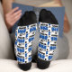 Blue high school Class of 2026 graduate patterned socks for a high school or college graduation gift. Cool varsity letters for the year on great custom apparel for seniors.