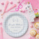 Explore the charm of our baby blue French-inspired spring Easter baby boy shower paper plates adorned with a delightful gingham pattern. Elevate your celebration with these stylish and themed plates perfect for a memorable baby shower.