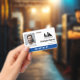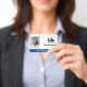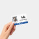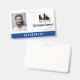 Office employee badge with a clean minimalist design in black, blue, and white. Add a photo of the employee along with name, personal pronouns, and profession. Personalise further with your business logo.