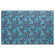 Blue Clover Shamrock Pattern St. Patrick`s Day Fabric. St Patrick's day modern fabric with hand-drawn blue shamrock, clover pattern on dark blue background.